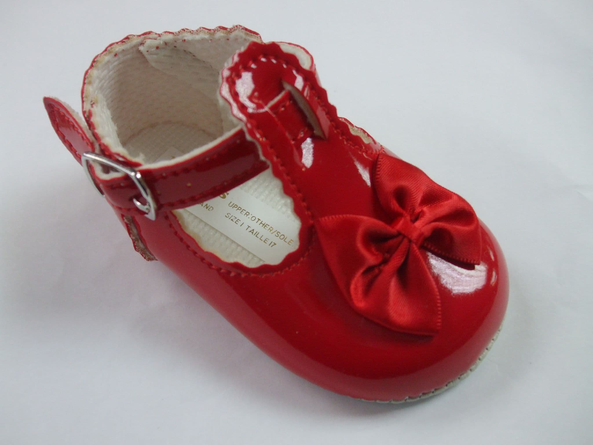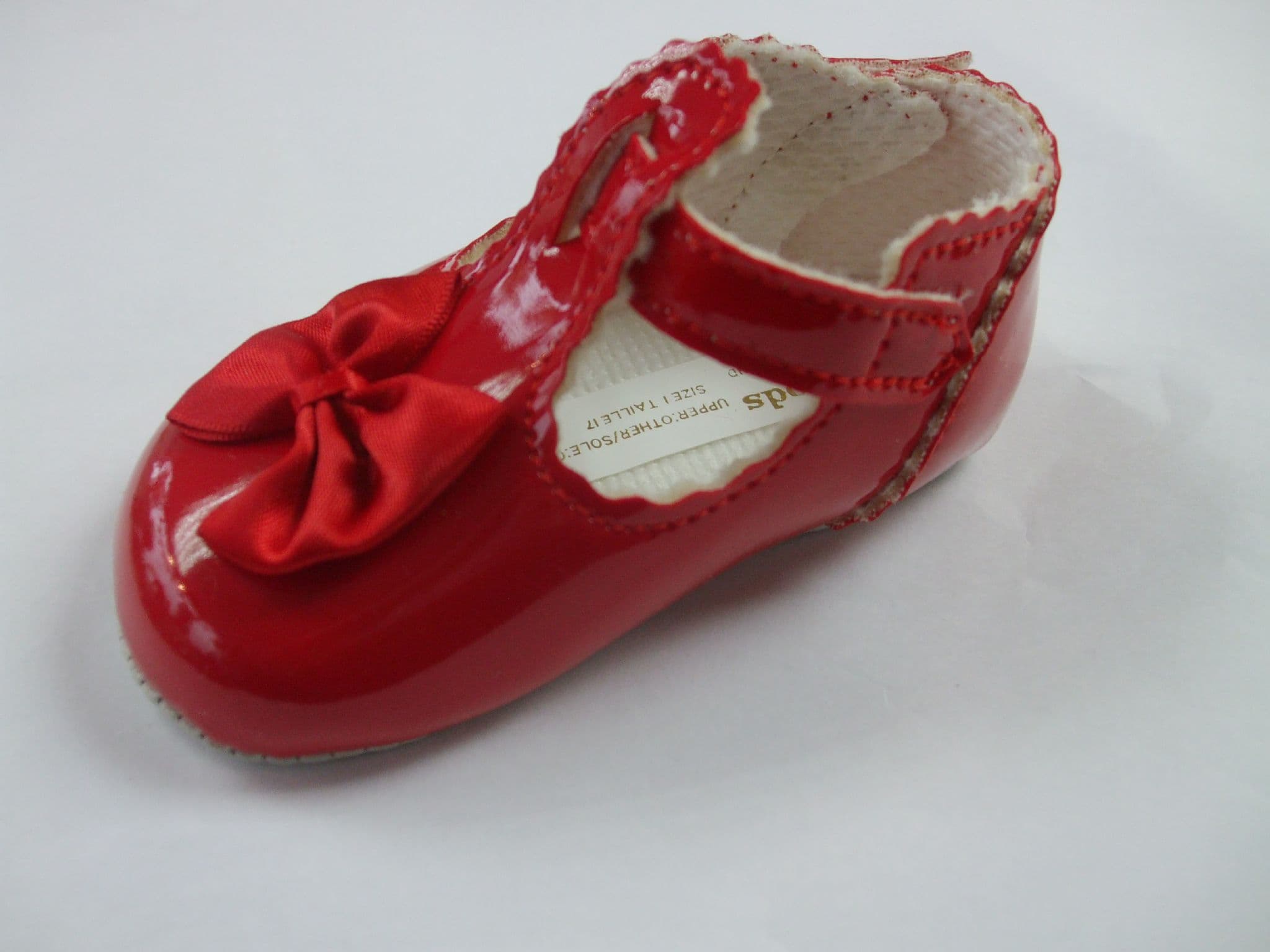 On the front of the shoe there is a small red coloured bow.